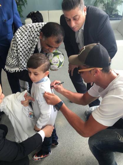 الطفل احمد دوابشة خلال زيارته الى نادي ريال مدريد في اسبانيا.
