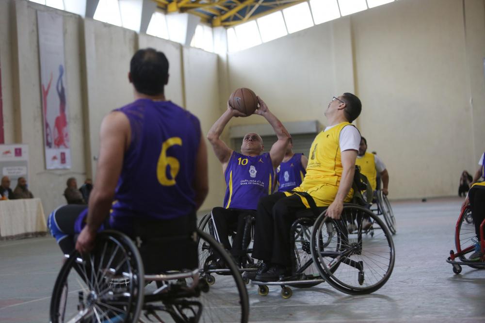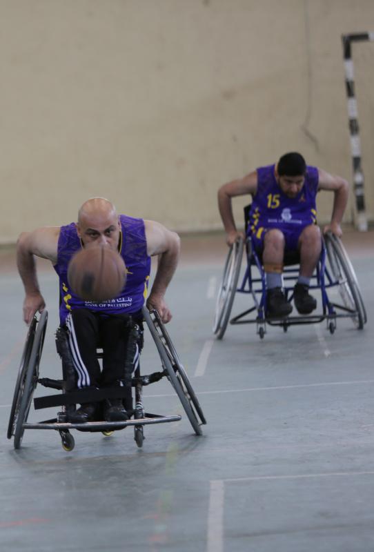 مباراة كرة السلة لذوي الاحتياجات الخاصة من الاعاقة الحركية بين فريقين من غزة والضفة في رام الله