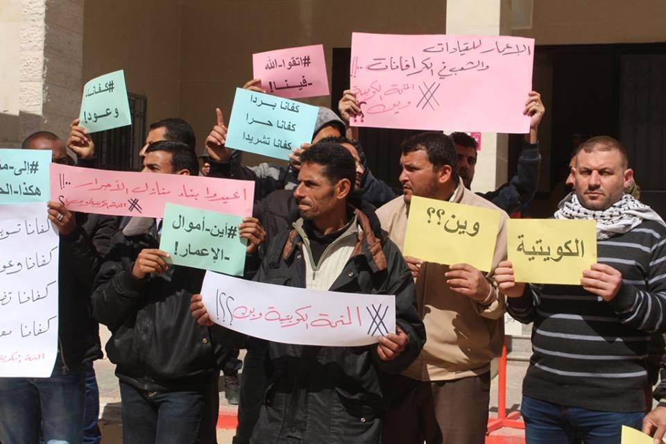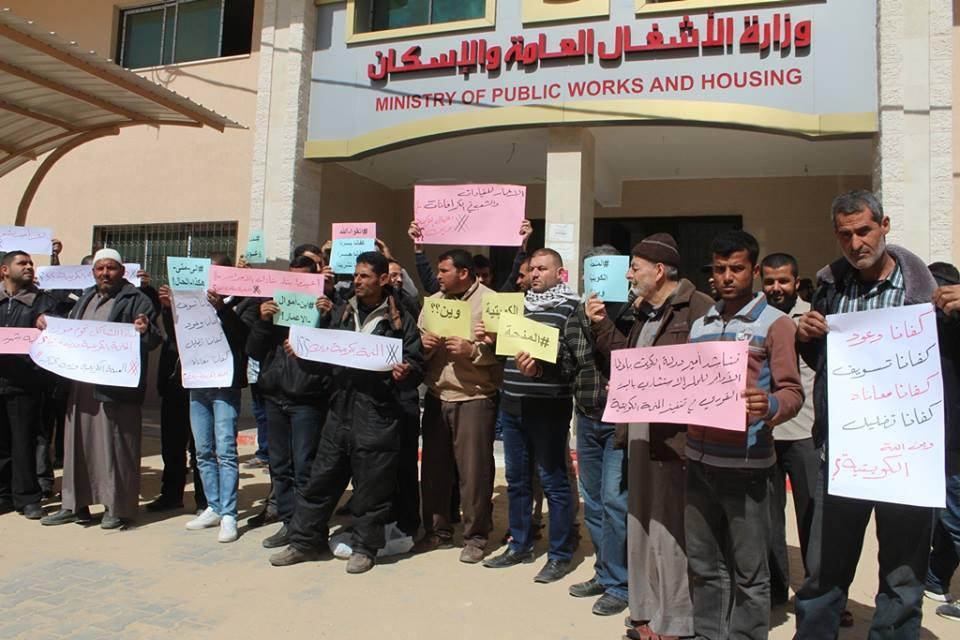 اعتصام أصحاب البيوت المدمرة بغزة للمطالبة بصرف المنحة الكويتية