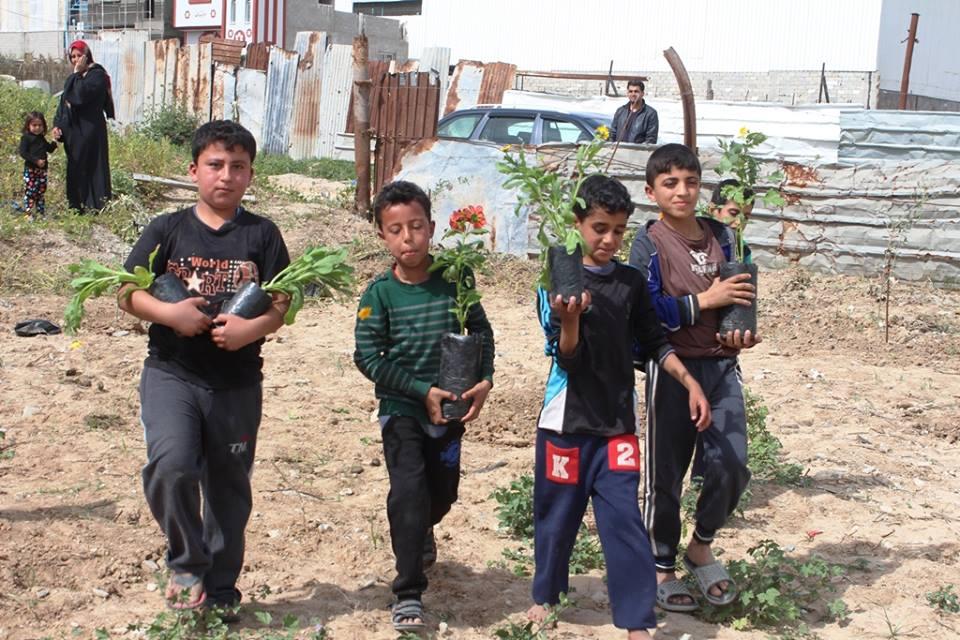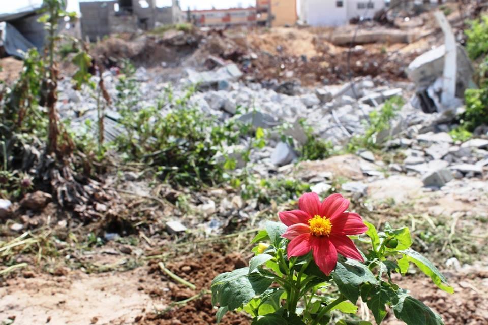 اطفال الشجاعية يزرعون الورود بين بيوتهم المُدمرة