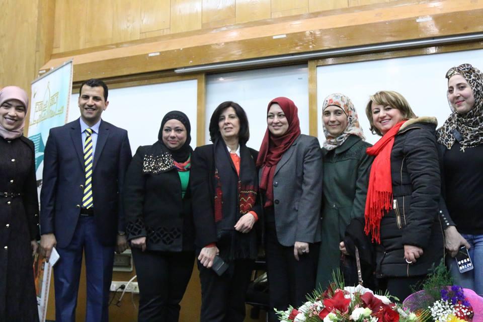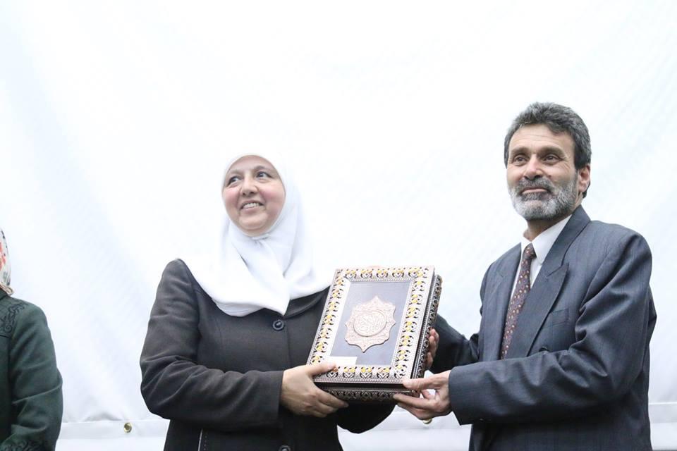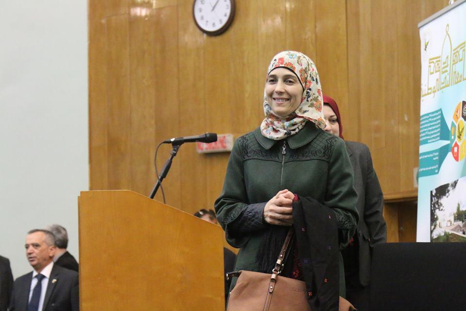 حفل تكريم المعلمة الفلسطينية حنان الحروب في جامعة النجاح