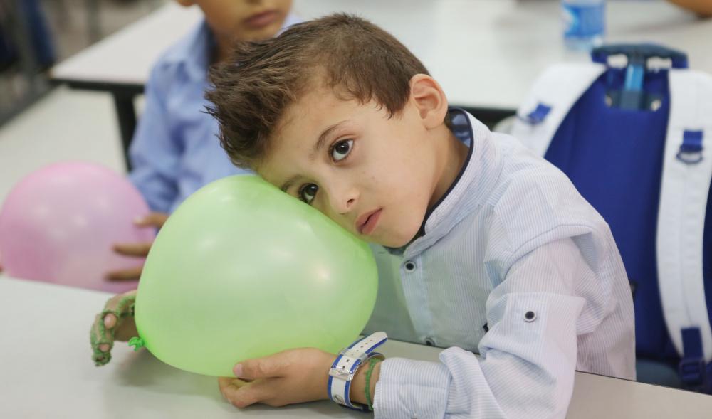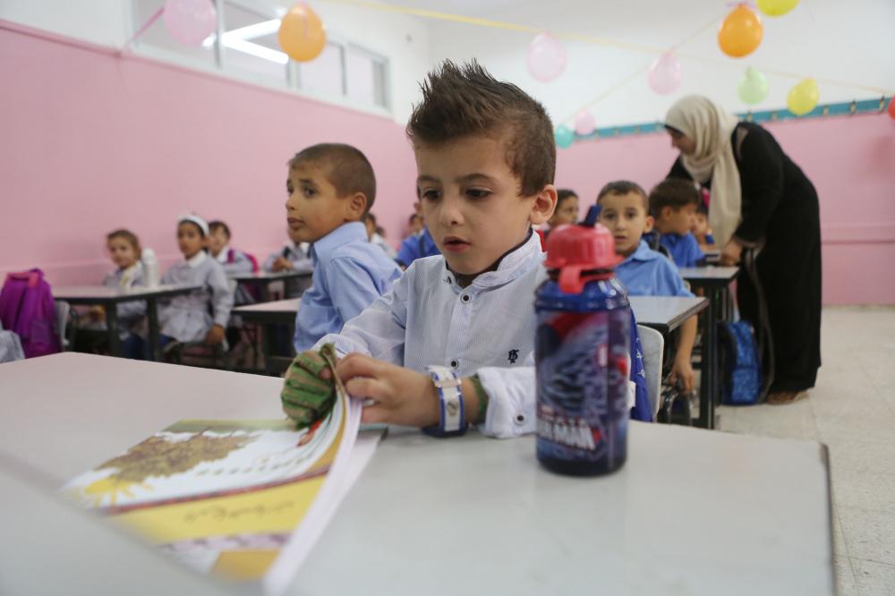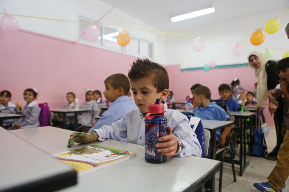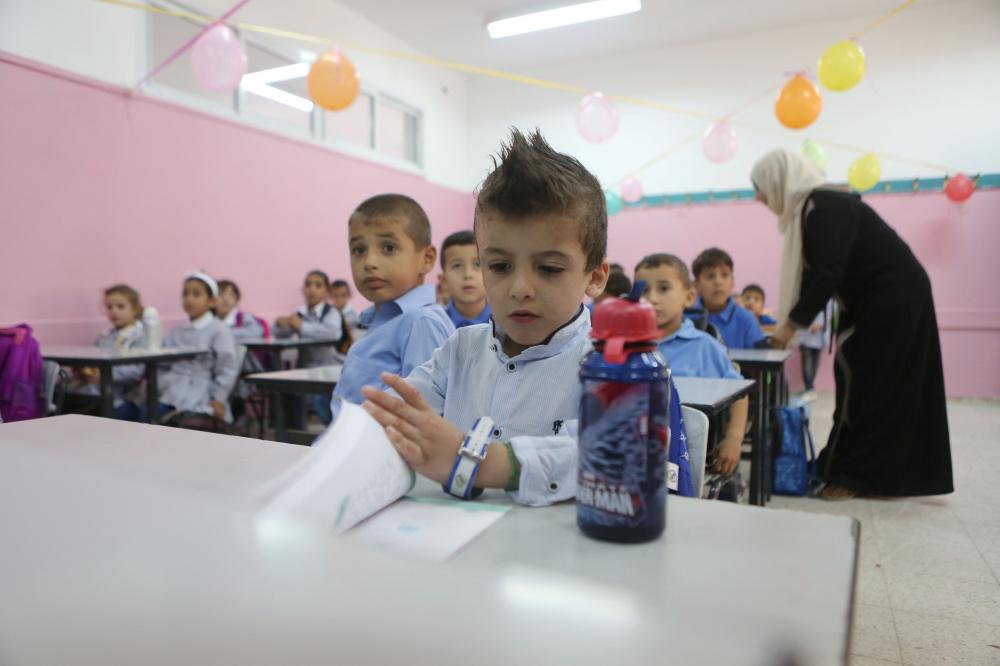 الطفل أحمد دوابشة في أول أيام الدراسة، وهو الناجي الوحيد من المحرقة التي استهدفت عائلته من قبل المستوطنين