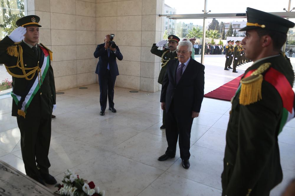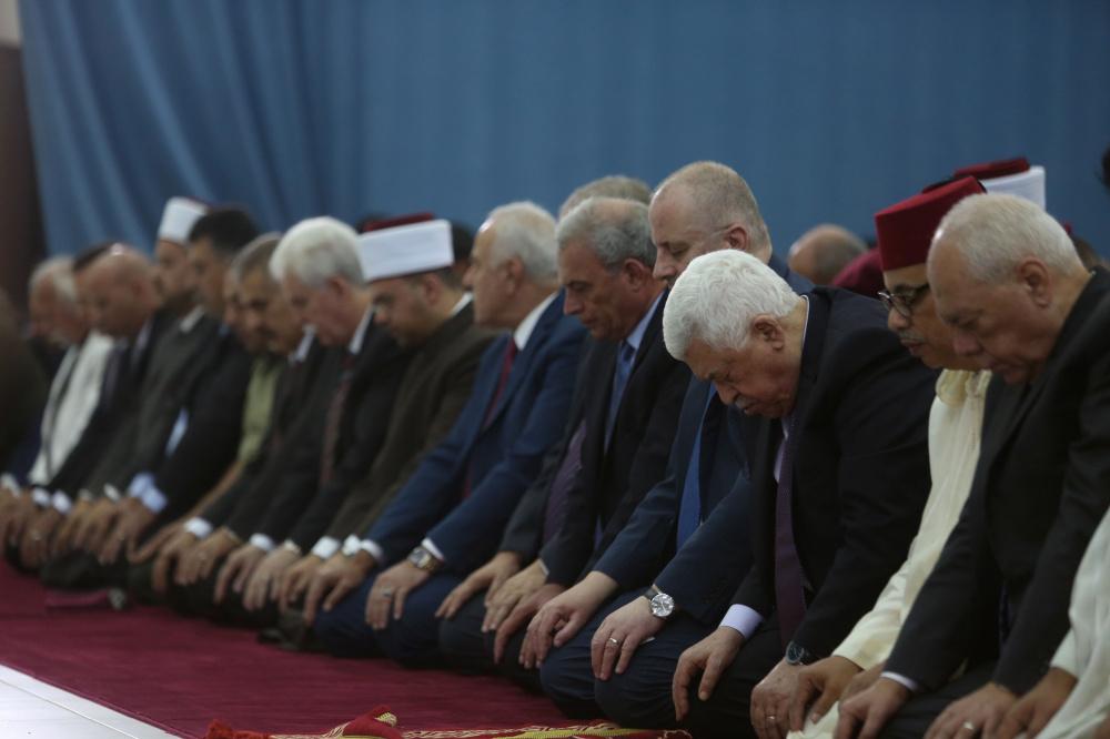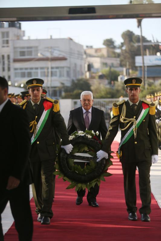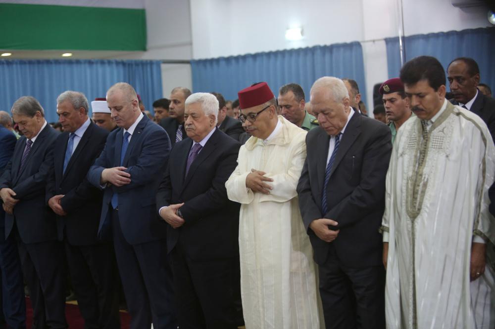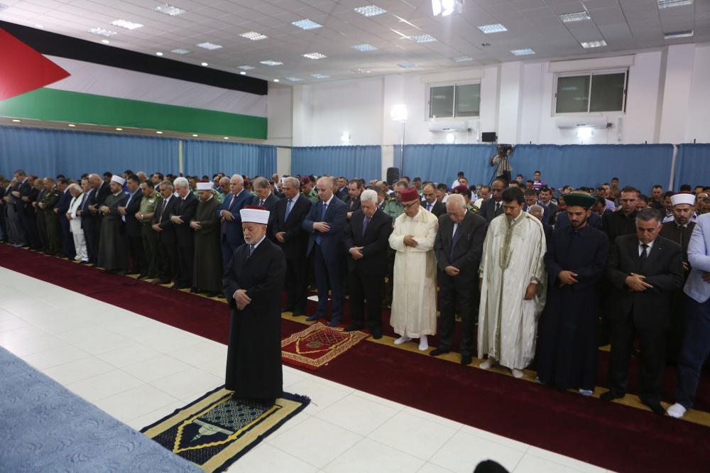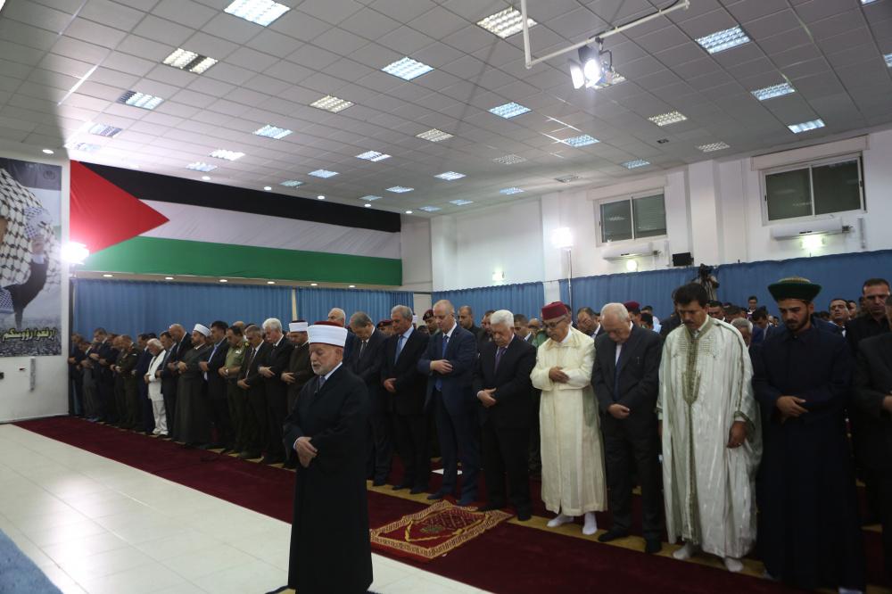 الرئيس يؤدي صلاة العيد في مسجد التشريفات ويضع إكليلا من الزهور على ضريح الشهيد عرفات