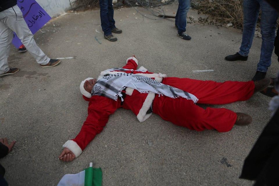 قوات الاحتلال تقمع بالرصاص والغاز مسيرة لـ"سانتا كلوز" في بيت لحم