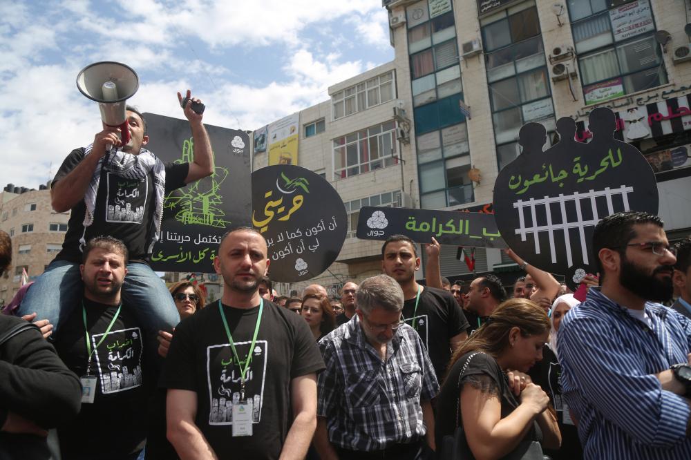 وقفة تضامنية مع الاسرى المضربين عن الطعام في رام الله