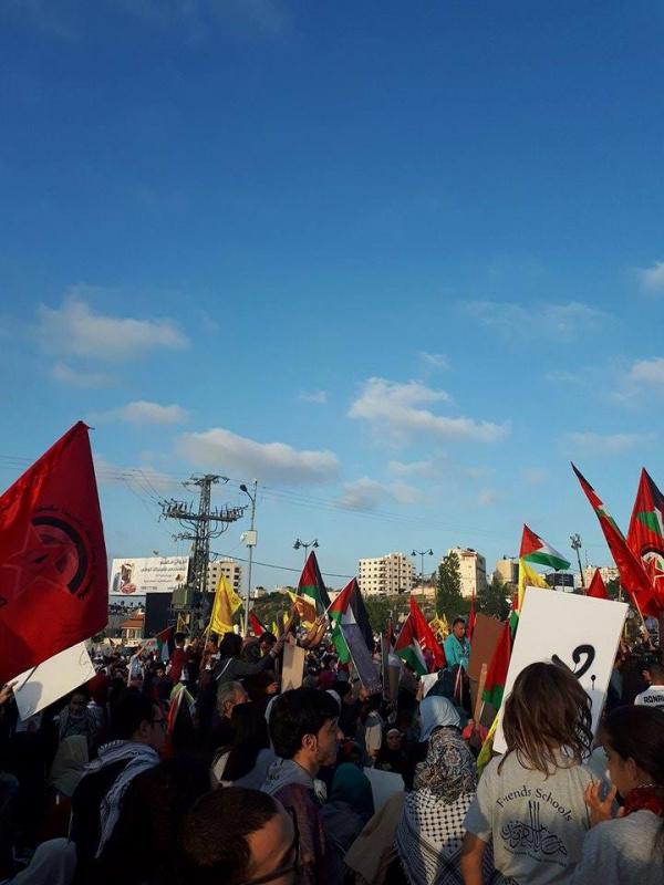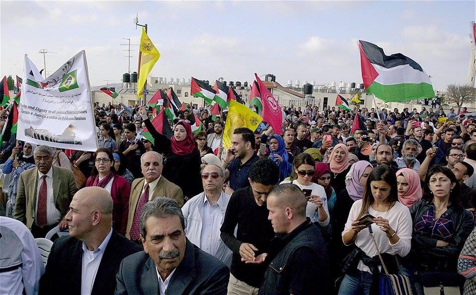 الآلاف يحتشدون في رام الله اسنادا للاسرى المضربين