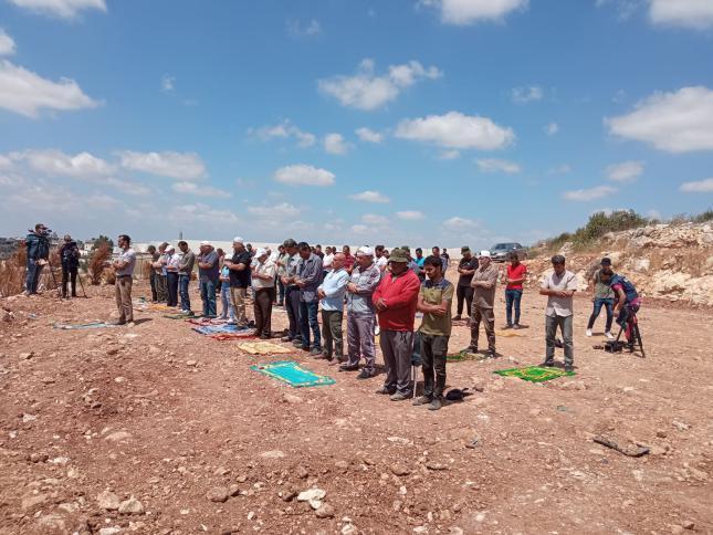 وأضاف أن إقامة الصلاة هنا هي رسالة إلى العالم أجمع بأننا متمسكون بأرضنا، ولن نسمح لهم بتنفيذ مخططاتهم الاستيطانية، ونحن أصحاب الحق والقرار على أرضنا.