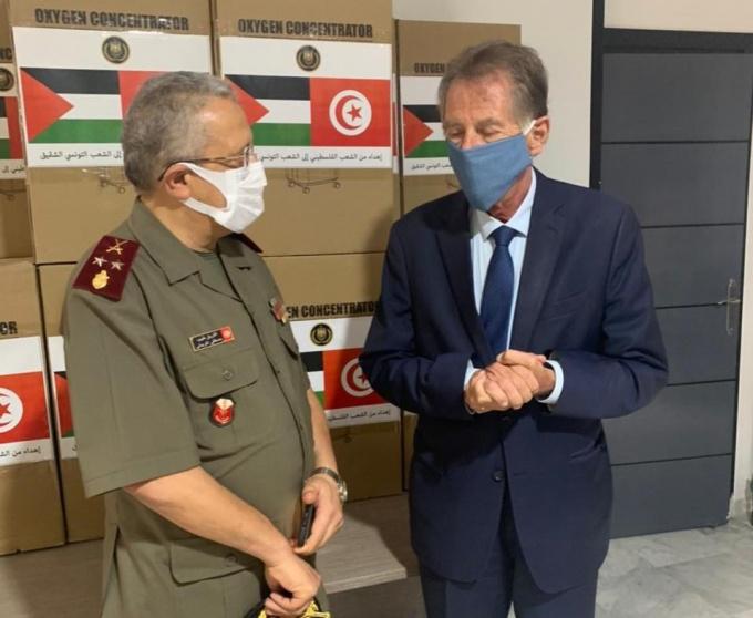 وقال السفير الفاهوم: تم اليوم تسليم 50 جهاز مكثف اكسجين لإدارة الصحة العسكرية في تونس، كدعم فوري وعاجل وفق الامكانيات الفلسطينية المتاحة.