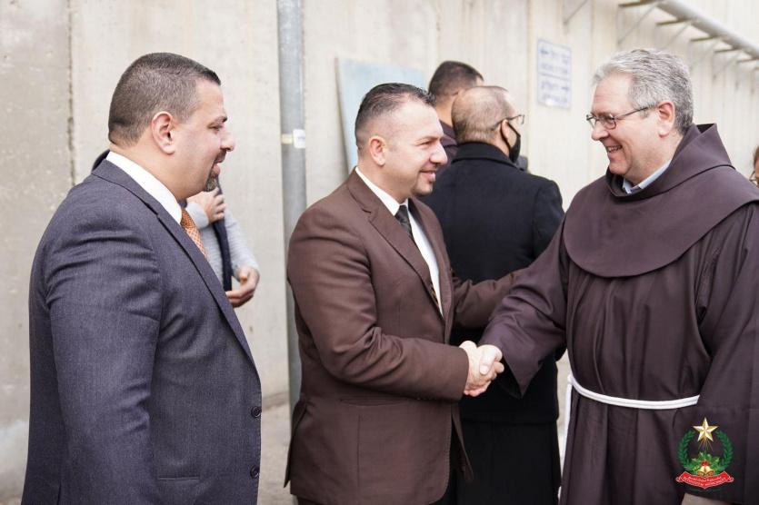 و كان في استقباله نائب رئيس بلدية بيت لحم أ. حنا حنانيا و محافظ بيت لحم اللواء كامل حميد و قائد المنطقة سيادة العميد ناضر عمر و مدير شرطة محافظة بيت لحم سيادة العميد طارق الحج وقادة الأجهزة الأمنية و معالي د. رمزي خوري رئيس اللجنة الرئاسية العليا لشؤون الكنائس في فلسطين ومدير عام البلدية أنطون مرقص وعدد من الشخصيات الدينية والوطنية والمجتمعية.