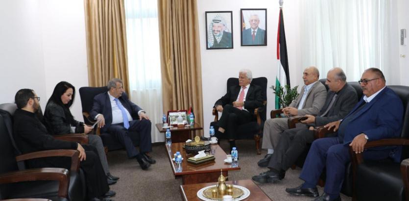 وحضر اللقاء، مدير عام المجلس الأعلى للكنائس أميرة حنانيا، والوكيل المساعد لشؤون القياس والتقويم والامتحانات د. محمد عواد، ومستشار الوزير ثروت زيد، ومدير عام المباحث الإنسانية عبد الحكيم أبو جاموس، ومدير مكتب التعليم المسيحي في فلسطين الأب ريمون خوري.