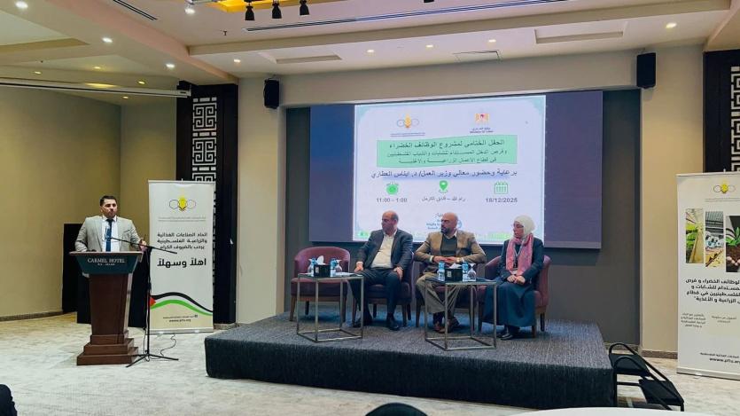 تحت رعاية وزيرة العمل الفلسطيني د. ايناس العطاري اختتم اتحاد الصناعات الغذائية والزراعية الفلسطينية مشروع “الوظائف الخضراء وفرص الدخل المستدام للشابات والشباب الفلسطينيين في قطاع الأعمال الزراعية والأغذية”، وذلك في محافظة رام الله، بحضور ممثلين عن الوزارات الرسمية، ومنظمة الأغذية والزراعة للأمم المتحدة (الفاو)، ومؤسسات دولية، وشركات قطاع الصناعات الغذائية الفلسطينية، إلى جانب عدد من الشابات والشباب المستفيدين من المشروع.