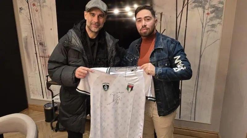 رسالة تضامنية.. غوارديولا يوقع على قمصان لفريق "غزة الإرادة"