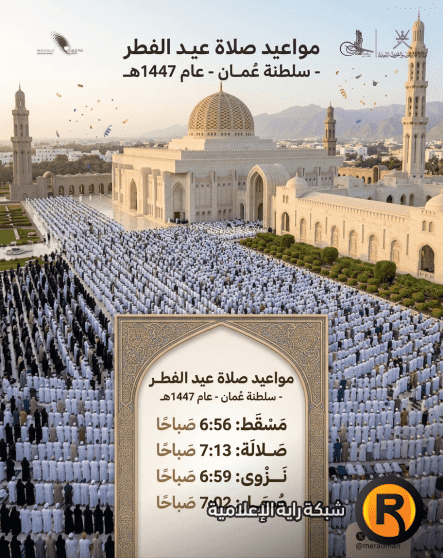 جدول مواقيت صلاة عيد الفطر 1447هـ في ولايات السلطنة