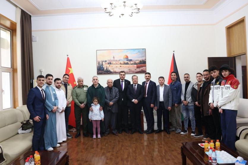وأكد السفير عواد، خلال الاستقبال، اعتزاز سفارة دولة فلسطين بأبناء الجالية الفلسطينية في الصين، وحرصها المتواصل على تعزيز التواصل معهم ومتابعة شؤونهم، بما يعزز الروابط الوطنية والاجتماعية، ويجسد وحدة أبناء شعبنا، ويكرس حضور الجالية الفلسطينية كجزء أصيل من النسيج الوطني الفلسطيني، مشيراً إلى أن السفارة تنظر إلى أبناء الجالية باعتبارهم ركيزة وطنية مهمة، وشريكاً أساسياً في صون الهوية الوطنية الفلسطينية.