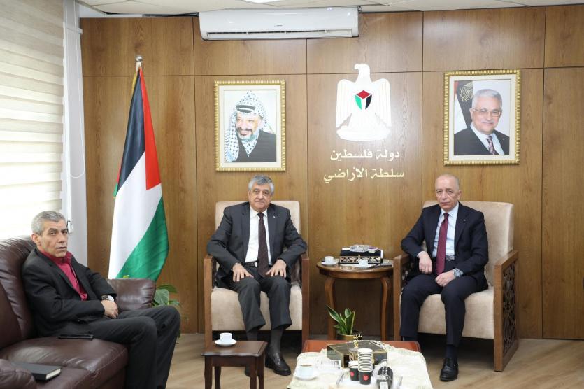 جاء ذلك خلال لقاء عُقد في مكتب رئيس سلطة الأراضي، الوزير علاء التميمي، اليوم الأربعاء، مع معالي وزير الأشغال العامة والإسكان، المهندس عاهد فائق بسيسو، والوفد المرافق له، حيث تم بحث آليات تنفيذ هذا المشروع الذي يندرج ضمن خطة الحكومة لتطوير البنية التحتية الخدماتية وتجميع المؤسسات الحكومية في مواقع متكاملة، تيسيراً لوصول المواطنين إلى الخدمات.