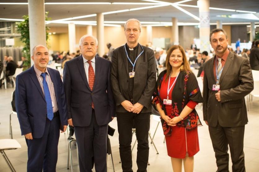 وضم الوفدان سفير فلسطين في الأمم المتحدة د.رياض منصور، وسفيرة فلسطين في ألمانيا الاتحادية د.خلود دعيبس، ومستشار رئيس سلطة جودة البيئة لتغير المناخ نضال كاتبة، والمدير التنفيذي لمركز التعليم البيئي / الكنيسة الإنجيلية اللوثرية في الأردن والأراضي المقدسة سيمون عوض، ومنسق لجة التغير المناخي في مجلس الكنائس العالمي القس هنريك كريبه.