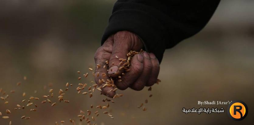 والتقطت عدسة مصور "رايـة" كف المزارع ابو حاتم الذي يبذر القمح بالقرب من نقطة قمع .