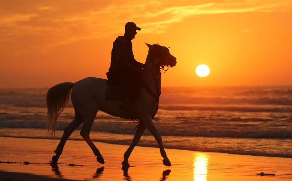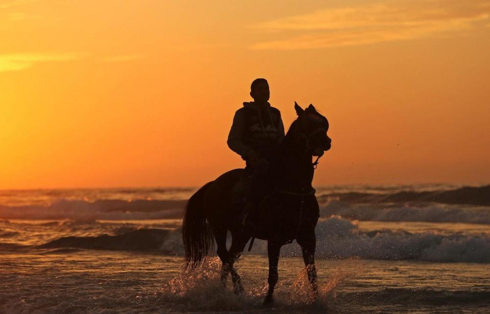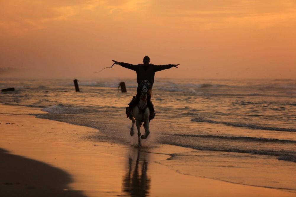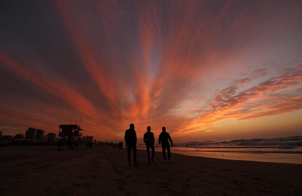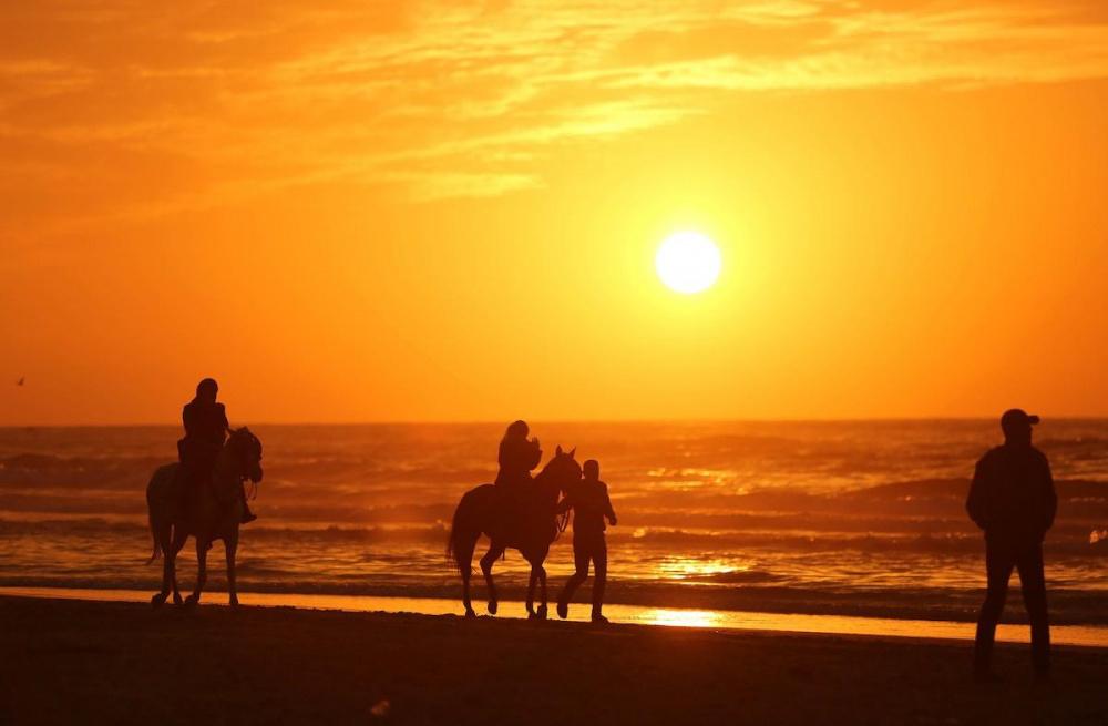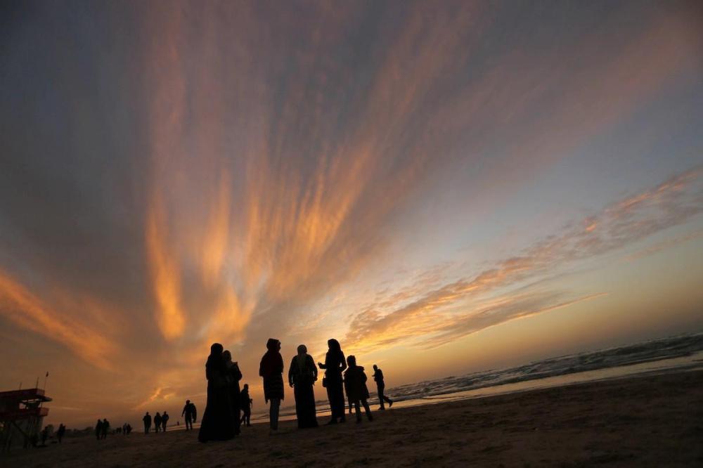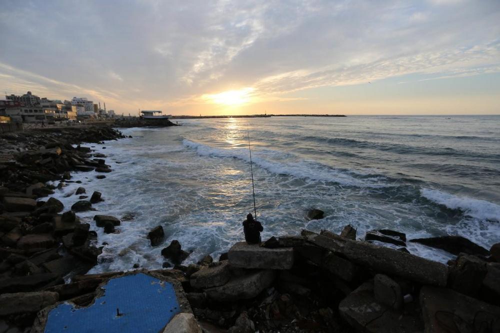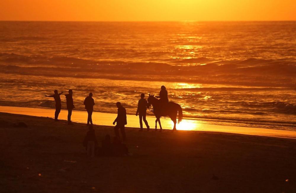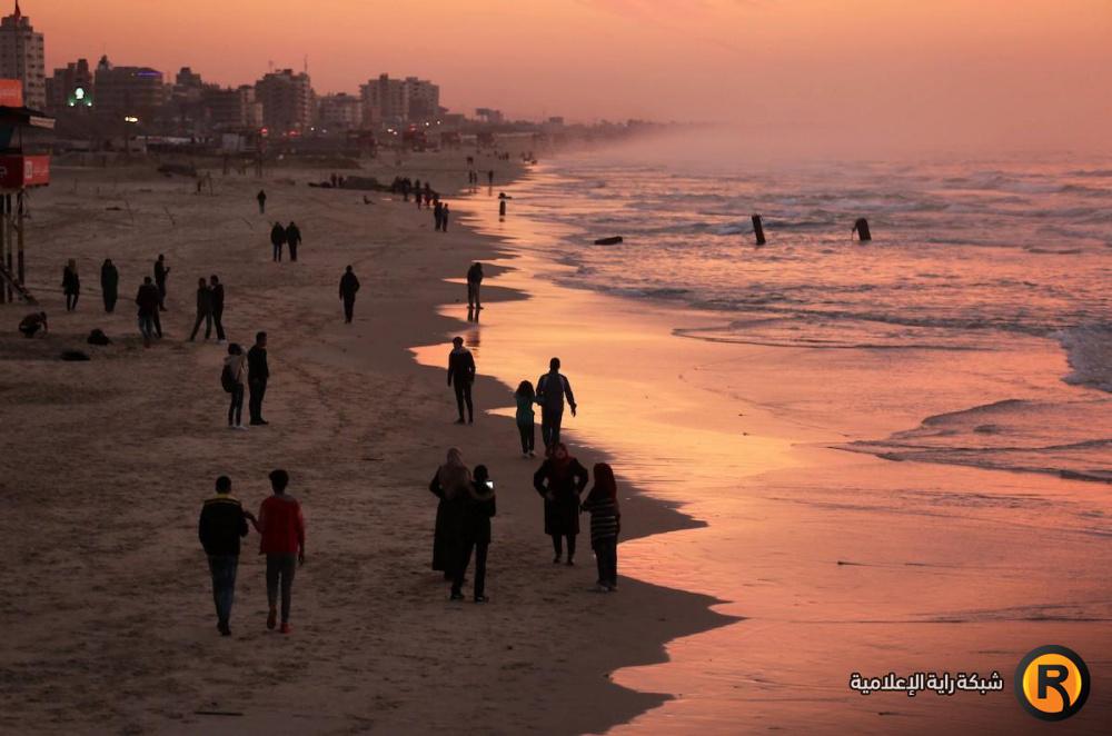 يلجأ الغزيون الى شاطئ البحر باستمرار، لا سيما وقت الغروب على الرغم من برودة الطقس والأجواء الباردة التي تعيشها البلاد جراء المنخفض الجوي الذي يضرب المنطقة.