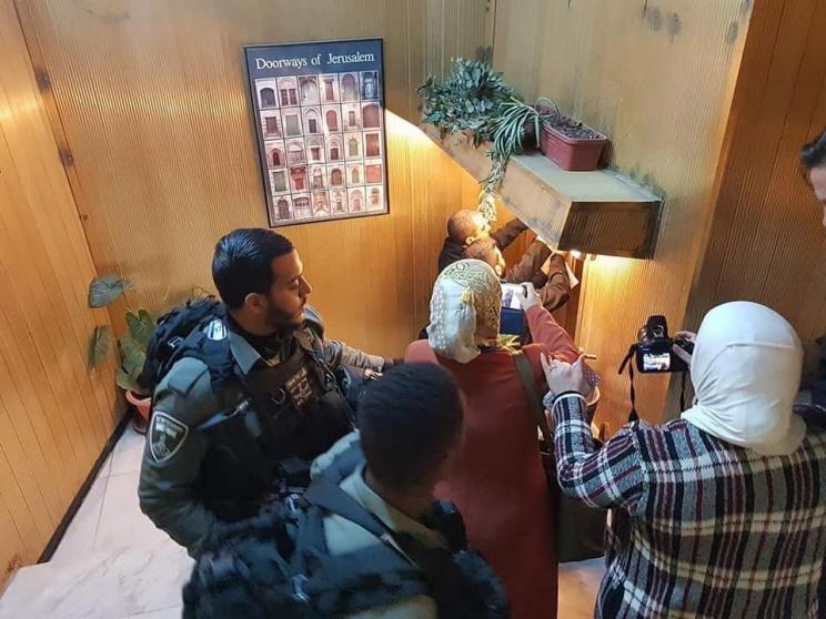 قوات الاحتلال اثناء منع مأدبة عشاء لصحفيين في القدس