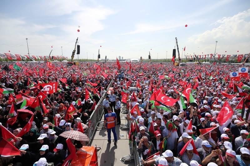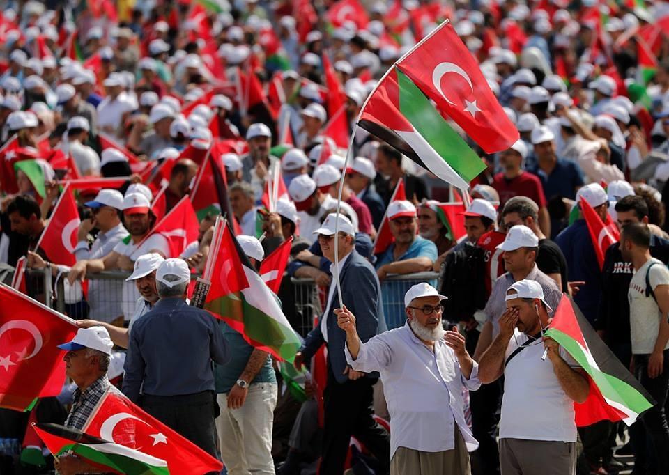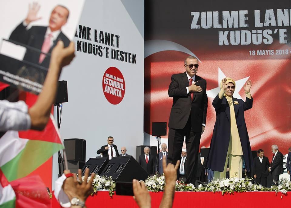 وكان مئات الآلاف من الأتراك قد شاركوا بمظاهرة حاشدة في مدينة اسطنبول التركية، دعما لفلسطين، وضد العدوان على قطاع غزة، ونقل البؤرة الاستيطانية "السفارة الأميركية" إلى القدس المحتلة.