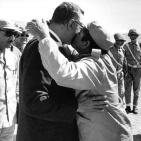 وضمت الصور مجموعة لقاءات للرئيس الراحل مع بعض الجنود والضباط، حيث قام أحدهم بتقبيله ليظهر مدى حبه له.