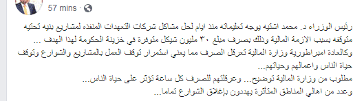 اتهم نشطاء عبر مواقع التواصل الاجتماعي وزارة المالية بعرقلة صرف مستحقات مالية لمقاولين وشركات منفذه لمشاريع بنية تحتية كانت قد توقف العمل بها نتيجة الازمة المالية التي تعاني منها السلطة.