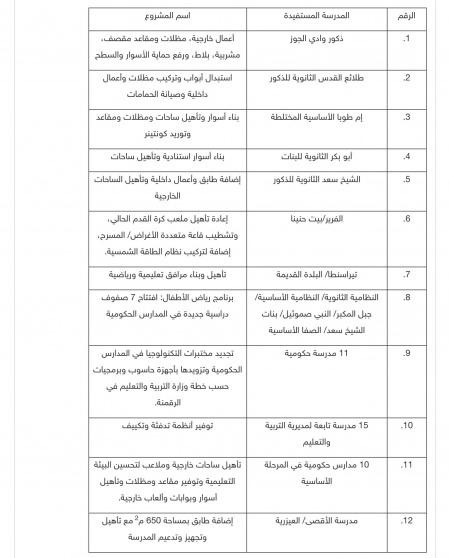 * مشاريع صيانة مدارس القدس لصالح وزارة التربية والتعليم: