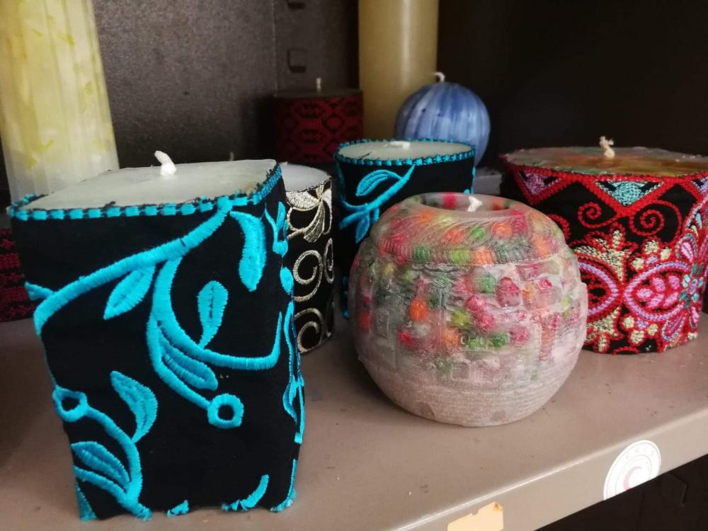 تقول ردينة "منذ عام 2003 بدأنا بورشة الشمع، دربنا الطلاب بالمركز، وحاليًا عندي تقريبا 8 طلاب، أعلمهم صناعة الشمع، وهم ينتجون ما نسبته 60% من خطوات تصنيعه، لكن بعض الطلبة عندهم مهارات عالية، وبعضهم قدراته بسيطة جدًا وادراكه ضعيف".