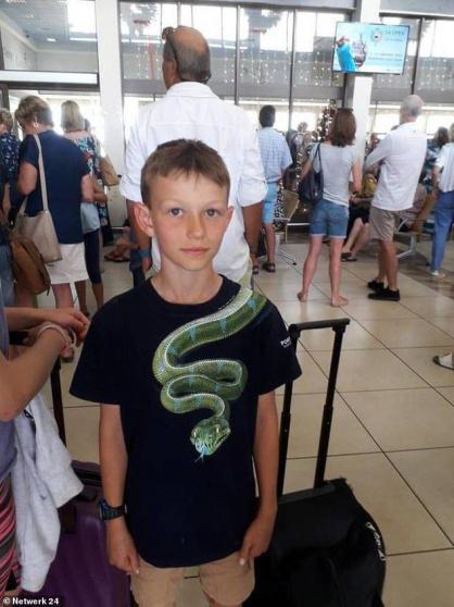 منع أمن مطار جوهانسبرغ في جنوب إفريقيا طفلا نيوزيلنديا من صعود الطائرة بسبب ارتدائه لقميص رسمت عليه صورة ثعبان ضخم.
