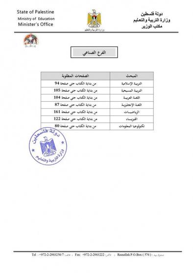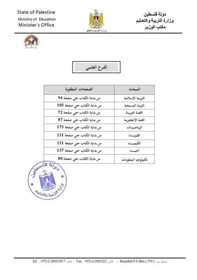 التربية تحدد المادة المطلوبة في امتحان الثانوية العامة