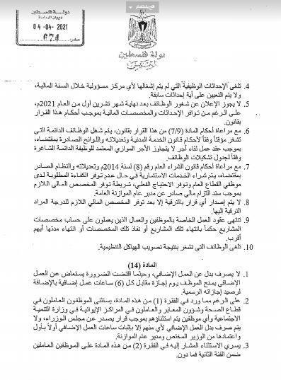أصدرت وزارة المالية الفلسطينية، مساء اليوم الأربعاء 7 إبريل / نيسان، قرارًا بقانون بشأن الموازنة العامة للسنة المالية 2021.