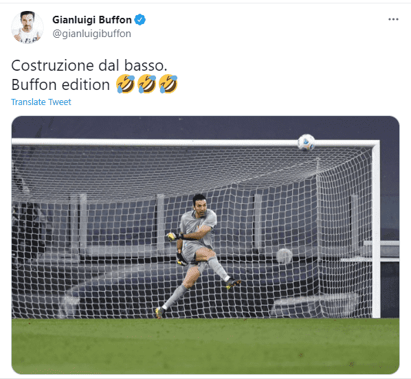 ونشر بوفون، على حسابه الرسمي في "تويتر" صورة له أثناء تشتيت إحدى الكرات إلى الأمام، وكتب عليها "بناء اللعب من الخلف.. نسخة بوفون" مرفقة بـ "إيموجي" ضاحك.
