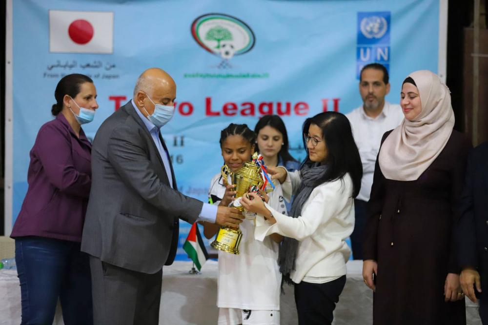 وعقب نهاية اللقاء النهائي قام الفريق الرجوب بتسليم قائدة فريق سرية رام الله كأس وميداليات المركز الأول، في حين تسلمت قائدة فريق بلدنا كأس وميداليات المركز الثاني، بينما حصل فريقي العاصمة والبيرة على كأس وميداليات المركزين الثالث والرابع على التوالي، إضافة إلى تكريم الحكام والحكمات والمراقبات في هذه البطولة. كما تم تقديم الشكر وتكريم ممثلة عن برنامج الأمم المتحدة الإنمائي (UNDP) تشيتوسي نوغوتشي، والحكومة اليابانية، على دعمهما هذه البطولة المهمة للفتيات.