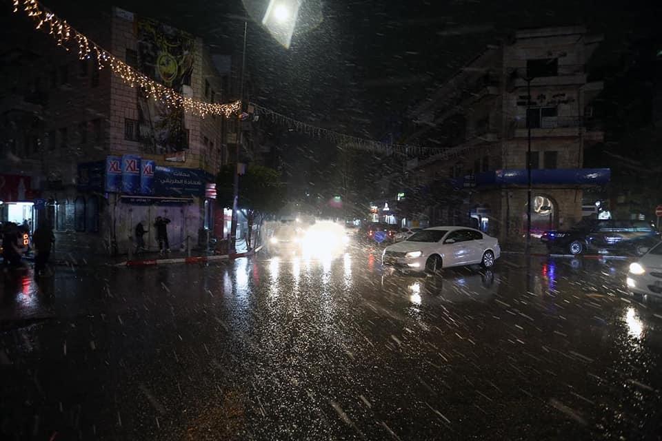 وأظهرت مقاطع فيديو تم تداولها على مواقع التواصل الاجتماعي، تساقط الثلوج في مدينة رام الله، والخليل وبيت لحم والقدس.