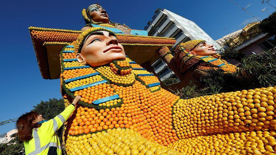 وشهد المهرجان انشاء تماثيل مصنوعة من الليمون والبرتقال خلال الفعاليات الـ 88 للمهرجان الذي جاء هذا العام بعنوان "الأوبرا والرقص" في مينتون الفرنسية.
