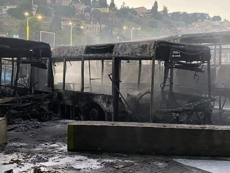 #شاهد | حريق يلتهم 18 حافلة تابعة لشركة "نتيفي إكسبرس" بالمحطة المركزية في صفد