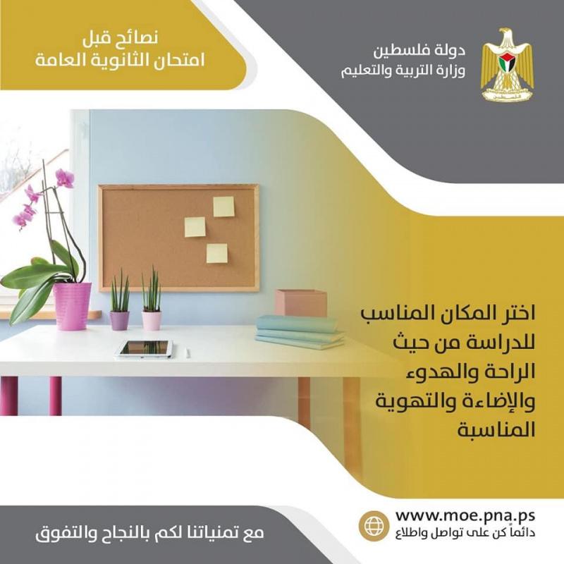 وفيما يلي نصائح لطلبة الثانوية العامة التوجيهي: