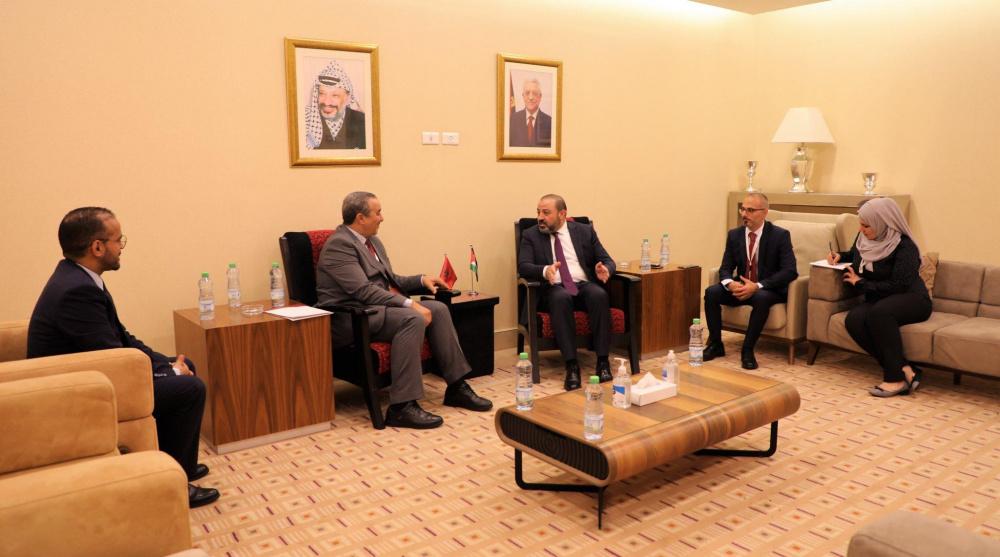 وعقد النائب العام مساء اليوم اجتماع مع الوفد الاردني المشارك في المؤتمر برئاسة رئيس النيابة الاردني السيد يوسف ذيابات وبمشاركة النائب العام الاردني السيد حسن مهاوش العبدلات، ومدعي عام هيئة النزاهة ومكافحة الفساد محمد سلامة ومدعي عام عمان السيد ثائر نصار بحضور مساعد ي النائب العام الاستاذ اشرف عريقات والاستاذ ياسر حماد ورئيس نيابة التعاون القضائي الدولي الاستاذ جميل سجدية ورئيس نيابة الجرائم الالكترونية الاستاذ ناصر جرار لبحث اليات تعزيز التعاون في مجال مكافحة الجريمة وتبادل الخبرات بين الطرفين، وفي ذات السياق اجتمع عطوفة النائب العام بحضور رئيس النيابة العامة الاستاذ علاء عواد مع الوفد المغربي الذي ضم كل من سعادة القاضي محمد المرابط والقاضي يوسف الزماطي وممثل عن السفارة المغربية في فلسطين لبحث اطر تفعيل مذكرة التفاهم الموقعة بين الطرفين، فيما رحب النائب العام بلقاء منفصل آخر بممثل النيابة العامة بالصومال السيد اسماعيل علي جامع الاخصائي في مكافحة غسل الاموال وتمويل الارهاب