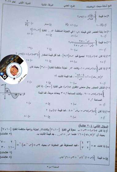 إجابات امتحان الرياضيات الورقة الثانية الفرع العلمي للثانوية العامة توجيهي فلسطين 2022