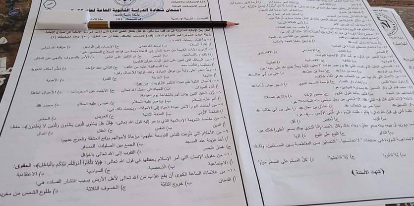 ومع ختام اختبارات اليوم، ينهي الطلبة امتحان التربية الإسلامية للفرع العلمي والأدبي والشرعي والدراسات الخاصة والصماعي والزراعي والاقتصاد المنزلي والفندقي والسياحي، حيث تكون الحلول والأجوبة موحدة لهم.
