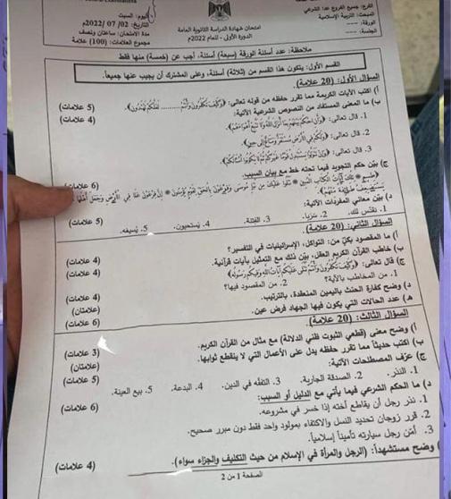 أسئلة وأجوبة امتحان التربية الدينية 2022 للعلمي والأدبي: اضغط هنا