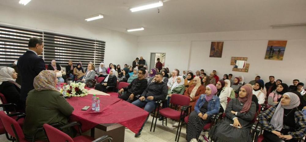 خلال مشاركته في محاضرة لطلبة العلوم المالية والمصرفية في جامعة فلسطين التقنية