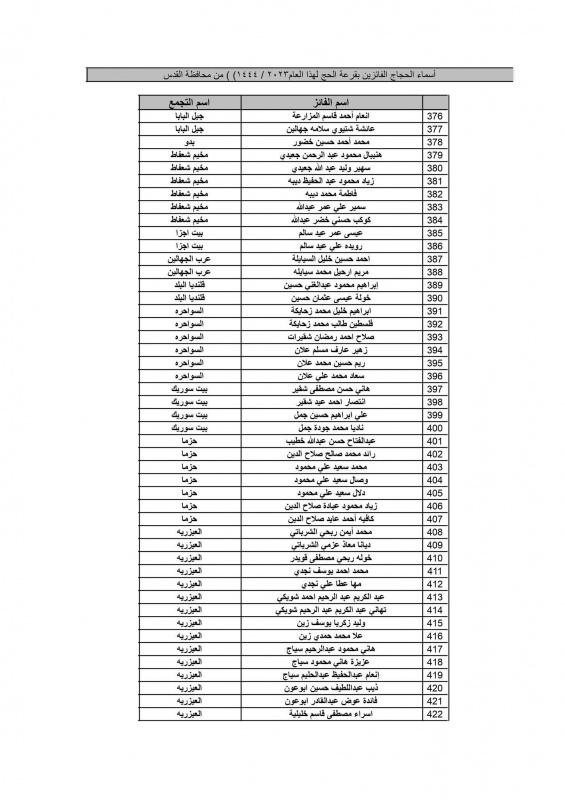 أسماء الحجاج الفائزين بقرعة الحج لهذا العام 2023 / 1444) ) من محافظة القدس