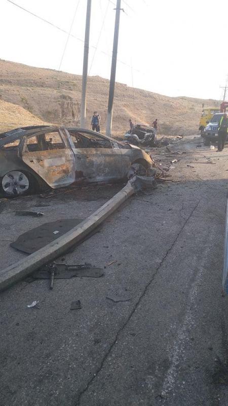 ونتج عن الحادث وفاة 5 أشخاص وإصابة 13 آخرين بجروح ورضوض في مختلف أنحاء الجسم، وعملت فرق الدفاع المدني على إخماد الحريق ومعالجة الحادث ونقل الإصابات إلى المستشفى، والإصابات قيد العلاج، وتم فتح تحقيق مروري بالحادث وأُعيد فتح الطريق أمام حركة السير.