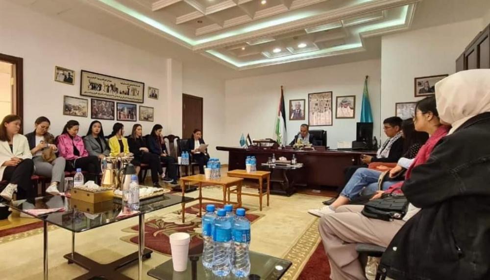 طلاب المدرسة الدبلوماسية الكازاخستانية ينظمون زيارة تضامنية للسفارة الفلسطينية