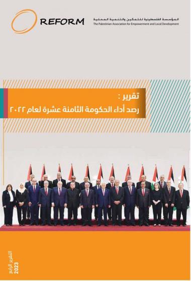 أصدرت المؤسسة الفلسطينية للتمكين والتنمية المحلية—REFORM تقريرها السنوي الرابع المتخصص برصد أداء الحكومة الفلسطينية الثامنة عشر، وركزَّ التقرير، بنسخته الرابعة، على قياس مدى تنفيذ الحكومة لالتزاماتها التي أعلن عنها رئيس الحكومة الثامنة عشر في خطاب الرد على كتاب تكليفه رئيساً للوزراء، وَفحَص سرعة استجابة الحكومة بوزاراتها المختلفة، لاسيما الخدماتية منها، على استفسارات المواطنين حول خدماتها التي تقدمها. كما رصد التقرير زيارات الوزراء (أعضاء مجلس الوزراء)، وجولاتهم التفقدية للمديريات في المحافظات والاطلاع على سير العمل فيها على مدار العام 2022. واستعرض التقرير انطباعات الجمهور حول أداء الحكومة وفقا لاستطلاع رأي عام الذي أجرته المؤسسة في نهاية العام 2022 من خلال شركة متخصصة باستطلاعات الرأي.