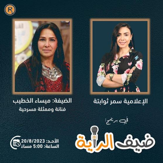 الفنانة والممثلة المسرحية ميساء الخطيب، ولدت في مخيم تل الزعتر في لبنان عام 1961، تحدثت لبرنامج "ضيف الرايـــة" عبر أثير "رايــــة" حول تفاصيل حياتها التي عاشتها بين مجزرتي صابرا وشاتيلا وتل الزعتر، بالإضافة لمشوارها المميز مع المسرح.