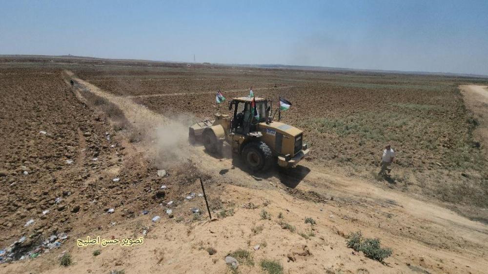 جرافة تقوم بتجهيز مخيمات العودة - تصوير: أنس الشريف