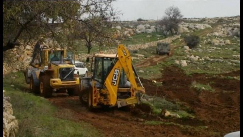 مستوطنون يجرفون أراضي ويقتلعون أشجار الزيتون غرب نابلس