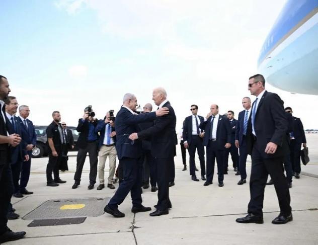 وفي وقت سابق اليوم، وصل بايدن إلى إسرائيل في زيارة دعم تستمر لعدة ساعات، وفق إعلام عبري، وهي أول زيارة رئيس أمريكي يزور إسرائيل وقت الحرب.